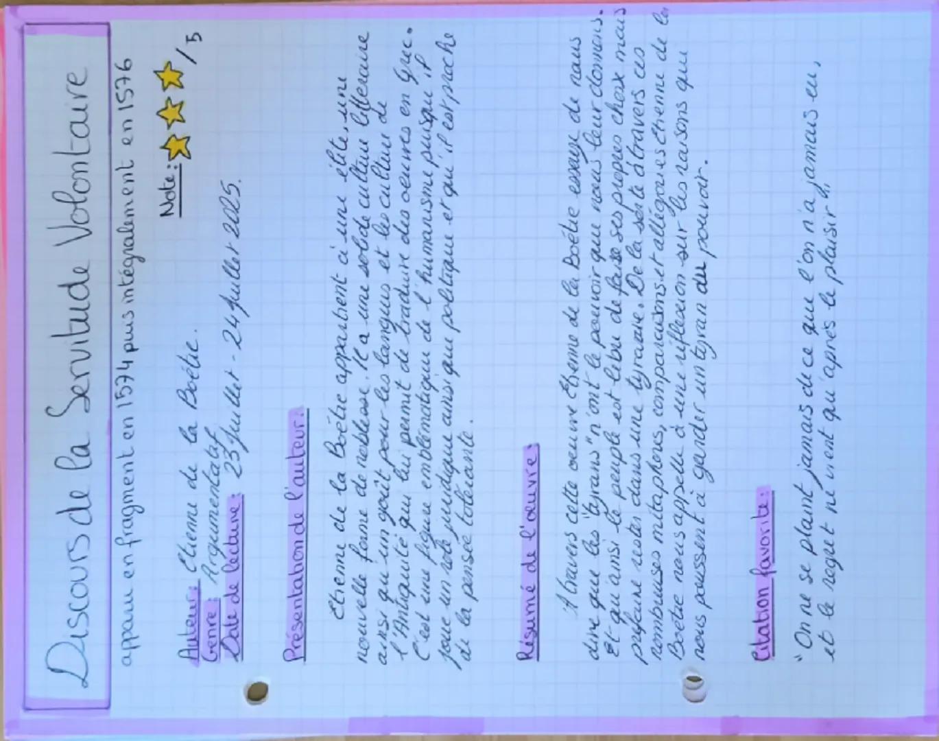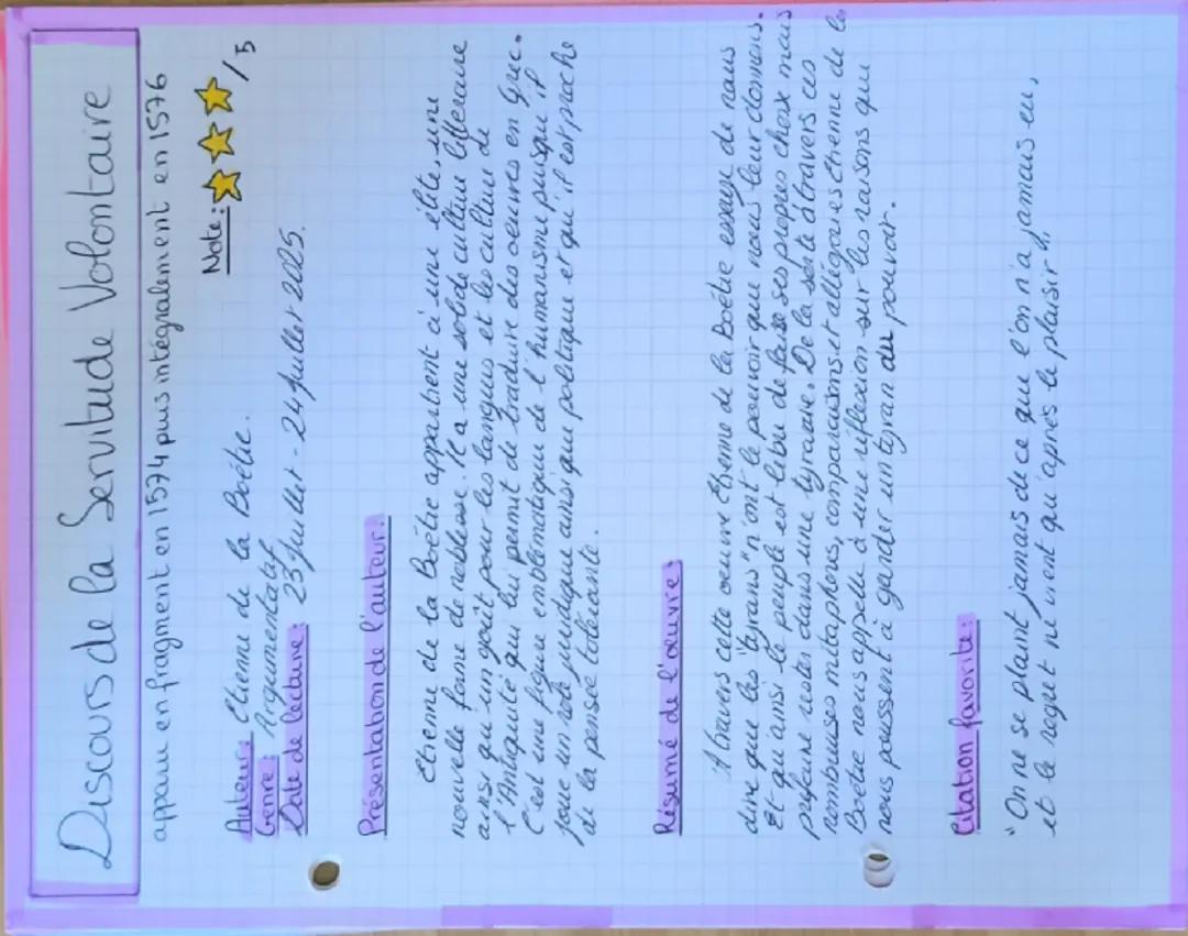 Fiche de lecture du discours de la servitude volontaire de Etienne de la BOETIE