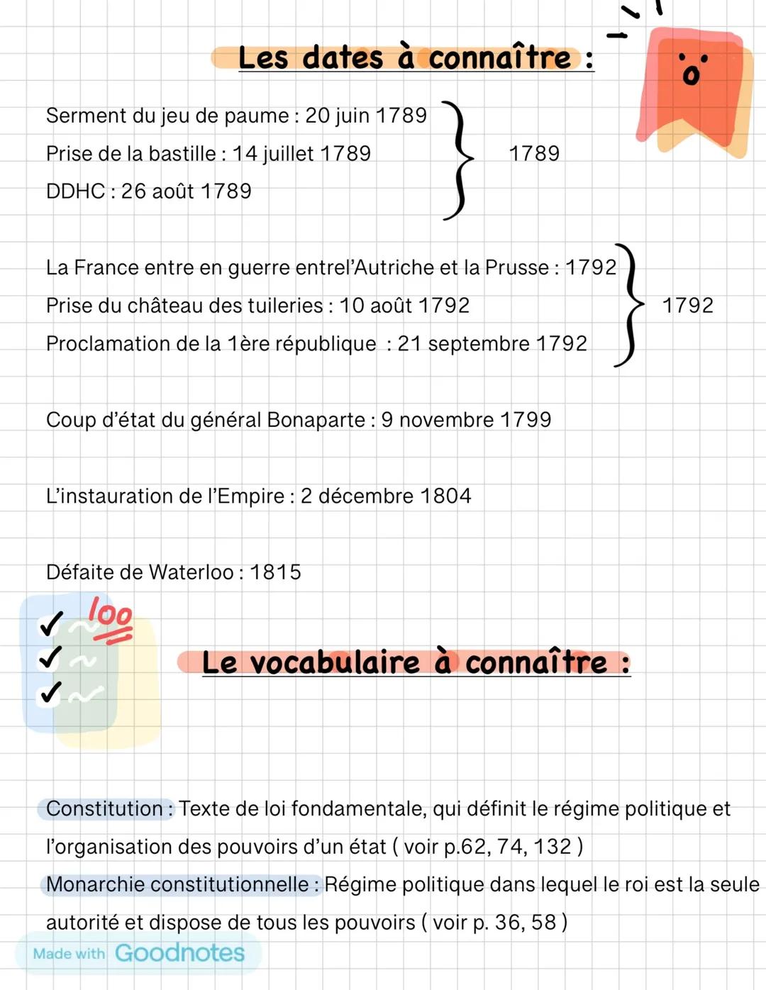 Découvrez les événements marquants et le vocabulaire essentiel de la Révolution française de 1789 à 1815. Les autres définitions sont sur une autre fiche.
