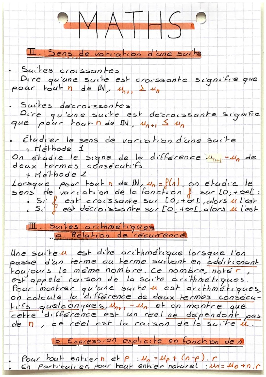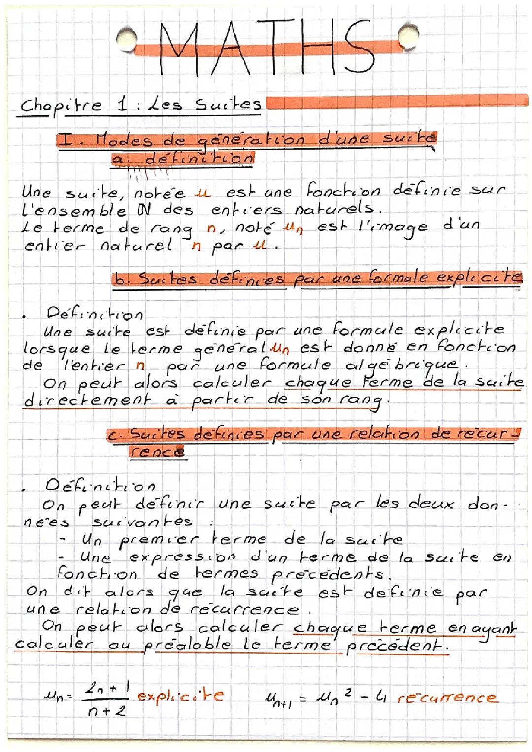 Chapitre 1 ; Les suites, spécialité mathématiques première générale